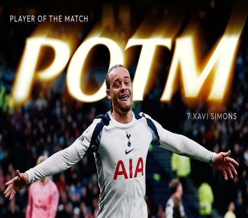 1射1传,哈维西蒙斯当选热刺20布伦特福德一役队内最佳球员