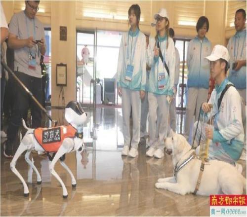 跳绳(大众)项目赛事期间,智能导盲犬引导视力障碍运动员入场的场景成为一大亮点。据智能导盲犬项目负责人臧厉娜介绍,本次赛事专门在体育馆内配备3-5台智能导盲犬设备,核心作用是为视力障碍运动员提供从休息室到比赛区域的精准引导服务。