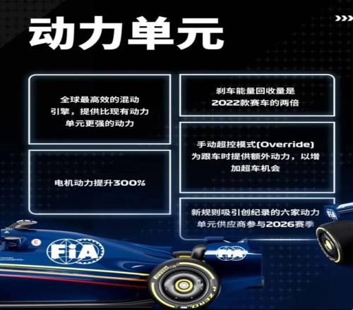 而 26 年则将有 5 家动力单元供应商同场竞技,法拉利、梅赛德斯继续留在场上,本田将与阿斯顿马丁合作,而福特将与红牛动力总成合作,奥迪将首次加入。而 Alpine 放弃雷诺转投梅赛德斯,新加入的凯迪拉克则将先使用法拉利引擎以等待自家引擎开发完成。