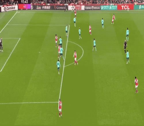 这一次进攻结束,阿尔特塔连换三人,厄德高、梅里诺、特罗萨德登场,马丁内利被换下。