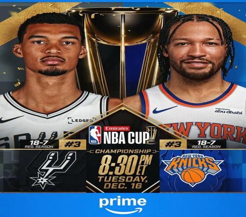季中赛决赛,马刺将和尼克斯争夺冠军,有意思的是,目前双方的常规赛战绩相同、各自分区排名也相同。