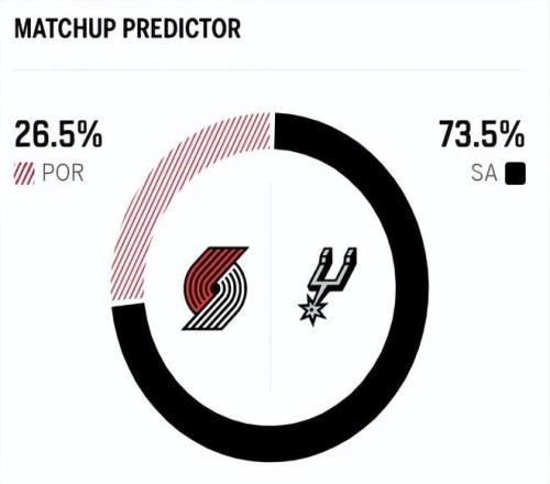 赛前,美媒ESPN对本场比赛进行了胜率预测,开拓者的胜率仅有26.5%,劣势明显,马刺队的胜率则高达73.5%。