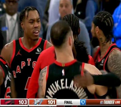 但关键时刻,又是巴恩斯扛住位置,先把球权拍出来,奎克利抓到球后被犯规,两罚全中!此后伊塞亚乔的压哨两分也改变不了结局,最终雷霆101-103惜败猛龙。亚历山大全场24分6助攻,罚球10中8,在对抗和身高吃亏的情况下,雷霆依旧拿到31次罚球,但他们三分投射和篮板球吃亏太多了。猛龙这边,奎克利23分11篮板,巴雷特14分6篮板,巴恩斯10分10篮板8助攻3盖帽,英格拉姆13分6篮板4助攻。