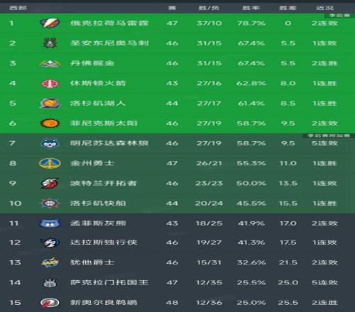 西部最新积分榜